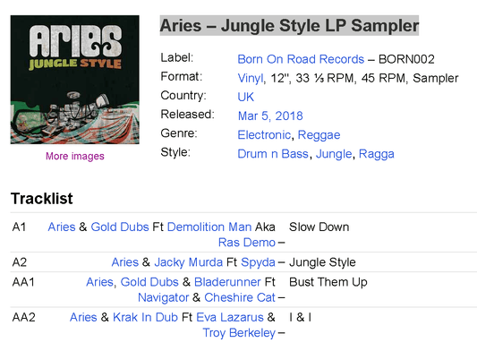 Aries – Jungle Style LP Sampler 12" VINYL